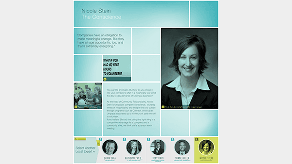 The themes from this ad ran through two other ads aimed at a consumer audience, three ads aimed at a business audience, radio ads, NPR reads and online banner ads.